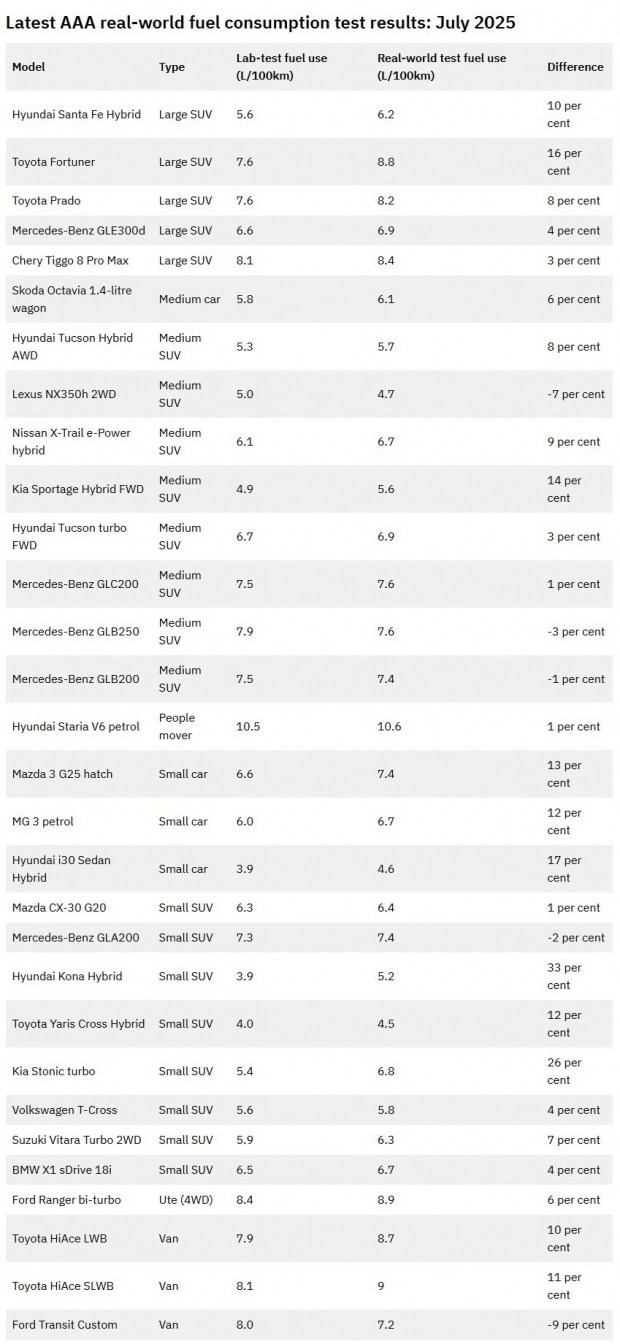 В Австралії визначили реальну витрату пального 30 нових моделей. У більшості учасників тесту вона була вищою за паспортну, проте деякі авто виявилися економічнішими.