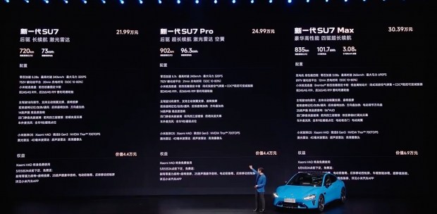 Усі значення дальності вказані за китайським циклом вимірювання CLTC, який вважається досить оптимістиним, тому реальний запас ходу моделі може бути нижчим. Xiaomi зазначає, що електромобіль використовує високовольтну архітектуру до 800 В, що забезпечує швидку зарядку та ефективність.