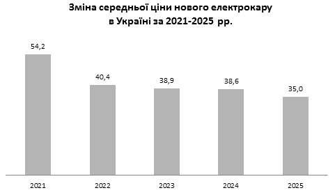 На сьогодні середня ціна нового електрокара, що купують українці, становить близько 35 тис. євро. Таким чином, за останні 4 роки електрокари в середньому в євровому еквіваленті подешевшали на 35%. Для порівняння - зростання середньої ціни нового авто в цілому по ринку становила 20%.