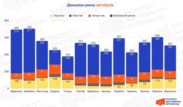 Впродовж вересня 2025 року українські перевізники придбали 507 нових та вживаних автобусів. Це на 16,1% менше у порівнянні з серпнем поточного року, та на 26,8% менше відносно вересня 2024 року.