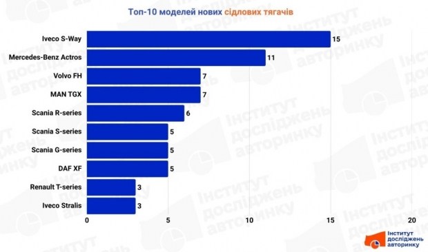 Експерти Інституту досліджень авторинку проаналізували статистику реєстрацій транспортних засобів в Україні та визначили найпопулярніші моделі в трьох сегментах сідлових тягачів: імпортовані вживані, внутрішні перепродажі та нові.