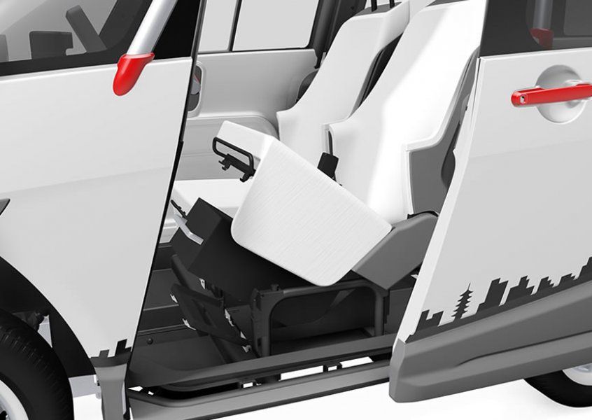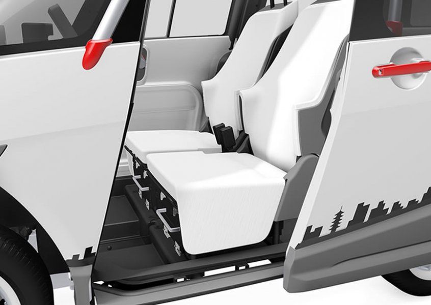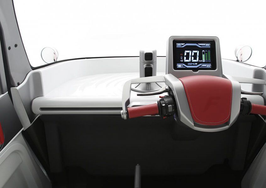 В движение переднеприводный Fomm Concept One приводится с помощью двух электромоторов, выдающих суммарную мощность около 14 лошадиных сил и 560 Нм крутящего момента. Питание осуществляется от шести сменных литий-ионных аккумуляторов, которые расположены под водительским сиденьем. Максимальный запас хода – 100 километров. Контролировать тягу и замедление водитель может с помощью рычагов на руле.