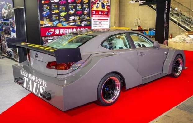 Якщо стандартний Lexus IS відомий плавними лініями та стриманою елегантністю, то TAUS-HFRS демонструє повну протилежність. Кузов отримав грубий, майже блоковий обвіс, пофарбований у сірий колір Chrysler Destroyer Gray, що лише підсилює відчуття «бетонної» форми.