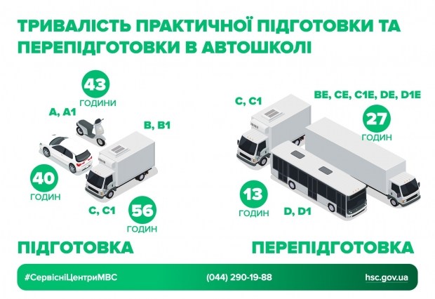 - ВЕ, СЕ, С1Е, DЕ, D1Е (перепідготовка) - 13 год.
