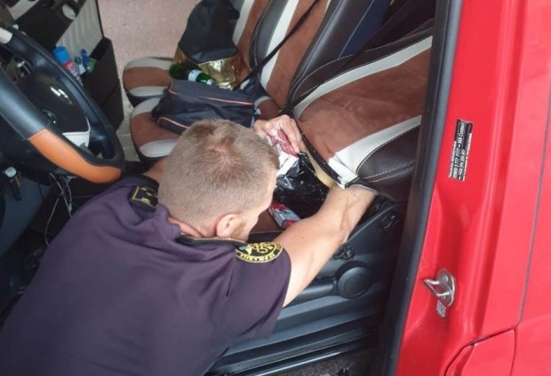 У ході ретельної перевірки транспортного засобу митники натрапили на тайник, що знаходився під переднім сидінням та вмонтованим всередині спинки водійського сидіння. Зі схованки посипалися 285 пачок тютюнових виробів з фільтром різних торгових марок.