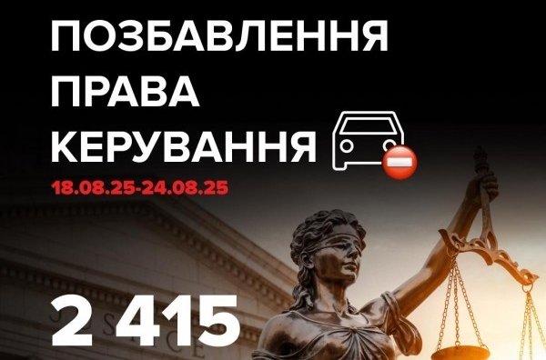 Як повідомляє ГСЦ МВС, впродовж останнього тижня за рішенням суду 2415 водіїв було позбавлено правом керування автотранспортом.
