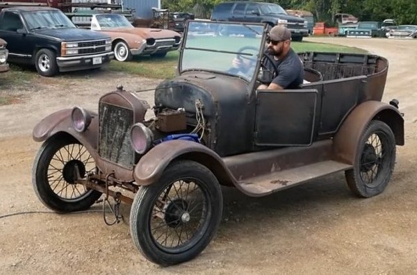 Ford T комплектний і зберіг рідні фари та колеса зі спицями, проте його стан після років простою надворі залишає бажати кращого. Кузов авто іржавий, внутрішнє оздоблення пошкоджене.